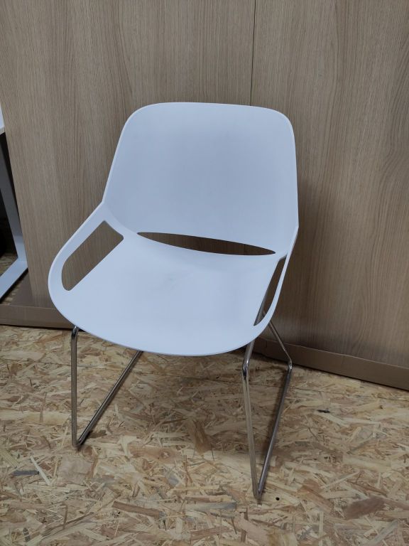 Leuke actieve stoel voorzien van mooi verchroomd draadframe en een witte kunststof zitschaal.