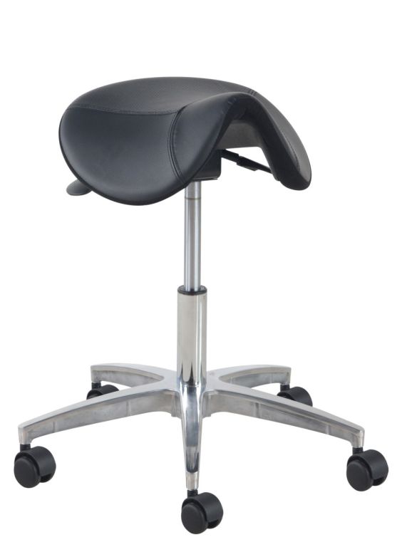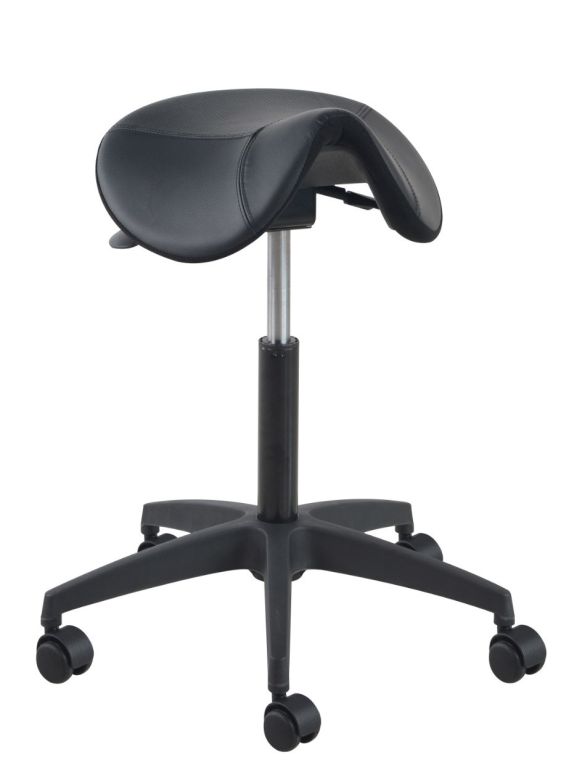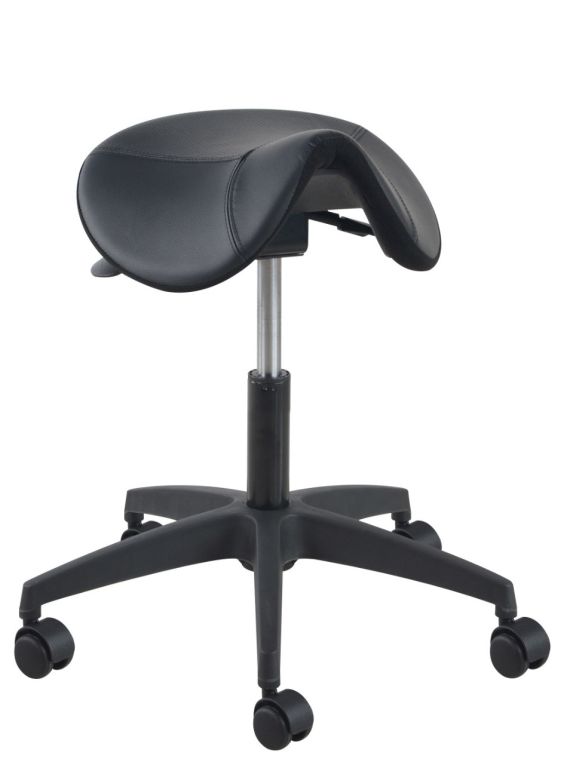 De Matera van Euroseats is een no-nonsense ergonomische zadelkruk. De voorgevormde zadelzitting heeft een foam-kussen voor meer comfort en een lederen bekleding. Het voetkruis is in zwart kunststof of gepolijst aluminium leverbaar en heeft 5 zwenkwielen. Deze werkkruk is in hoogte verstelbaar en heeft een kantelmechaniek onder de zitting, dat traploos instelbaar is qua zithoek.