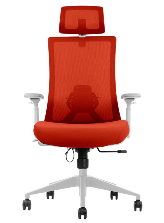 VER.001, 4-locking synchroontechniek, instelbare gewichtsregeling en zitdiepte, 3D-armleggers, verstelbare lendesteun, hoofdsteun.