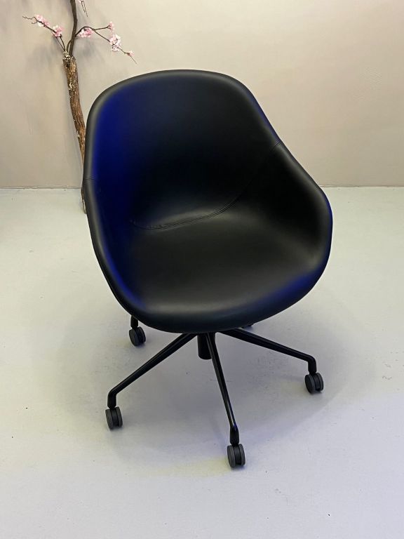 It's all about a chair. Dat is de HAY AAC collectie in een notendop. Centraal staat de organisch gevormde zitschaal, van een eenvoudige versie tot een lijdloos vormgegeven kuipzitting. Er zijn vele onderstellen mogelijk om te combineren, zowel qua materiaal als type. Zowel in natuurlijke houten uitvoering als in modern stalen frame mogelijk. Van vierpoots tot slede tot kruisvoet met zwenkwielen. En ook met de bekleding qua stoffen en kleuren kan je alle kanten op met de HAY AAC. Met recht een complete collectie aan stoelen die zich thuisvoelen op kantoor, in vergaderkamers, eetzalen of gewoon thuis waneer je veel waarde hecht aan design en uitstraling. Neem gerust even contact op om alle ins en outs van de AAC stoelen te weten te komen.
