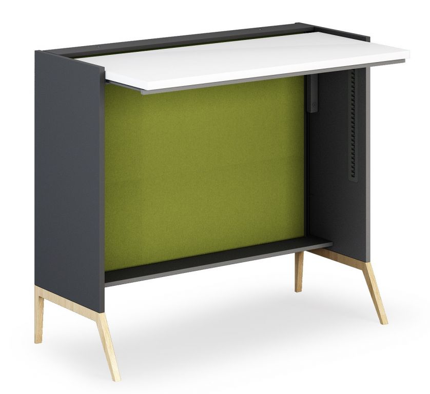 De Nest van Mikomax is een opvallend stijlvol en vriendelijk ogend zit/sta bureau. Het is oorspronkelijk bedoeld voor thuisgebruik maar uiteraard is deze professionele werkplek ook op kantoor inzetbaar. Het bureaublad van de Nest is eenvoudig in hoogte verstelbaar. Door het royale verstelbereik kan vrijwel iedereen er zowel zittend als staand aan werken. De zijwanden en de wand voor je schermen je helemaal af van je omgeving. Hierdoor kun je je optimaal concentreren. De wand voor je is gestoffeerd met fraaie stoffen die in vele kleuren leverbaar zijn. De massief eiken poten geven de Nest een extra warm karakter. Een perfecte aanwinst voor ieder thuiskantoor!