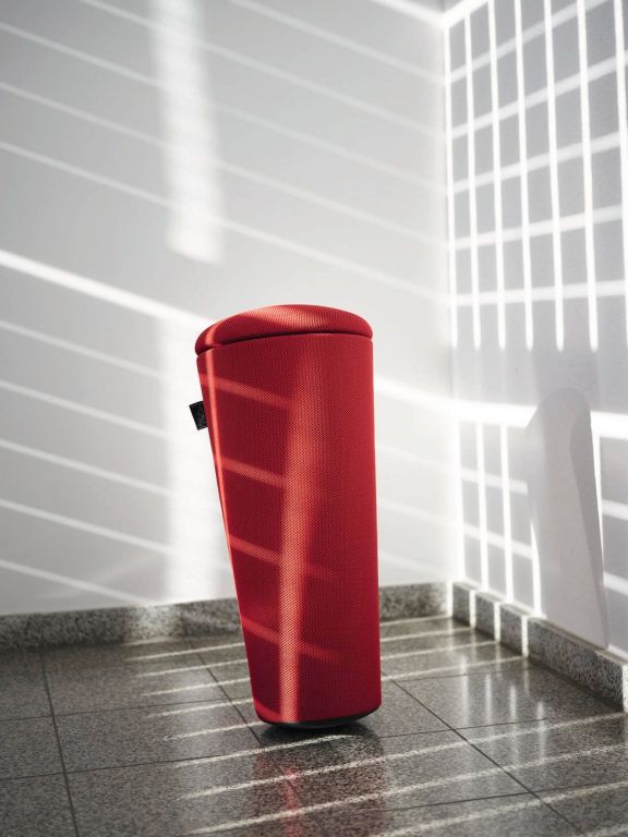 Zelfs onder een hoek van 50° draait de Stand-up terug en gaat vanzelf weer rechtop staan. Stand-up is een leuke losse benadering van de serieuze kant van het (werkende) leven. Deze dynamische kruk heeft een kegelvormig hol lichaam van polypropyleen met een fraai sluitend deksel van voorgevormd schuim als zitting. Romp en zitting zijn volledig bekleed met driedimensionale stof. De onderzijde heeft een spits toelopende zool van zwarte anti-slip kunststof. De geïntegreerde stalen gewichten en dempingscylinder zorgen voor stabiliteit en comfort. De draaglus is van stevige zwarte kunststof.